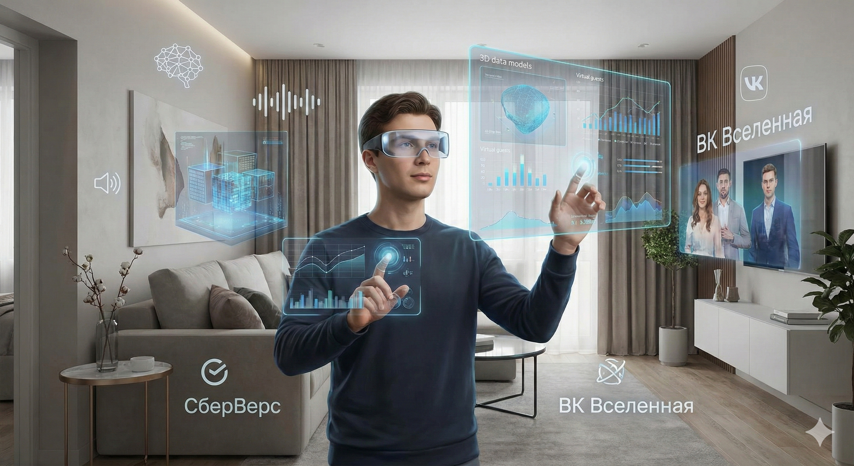 Live-субтитры и перевод: Не просто текст внизу, а голографические плашки на языке зрителя, следующие за говорящим.